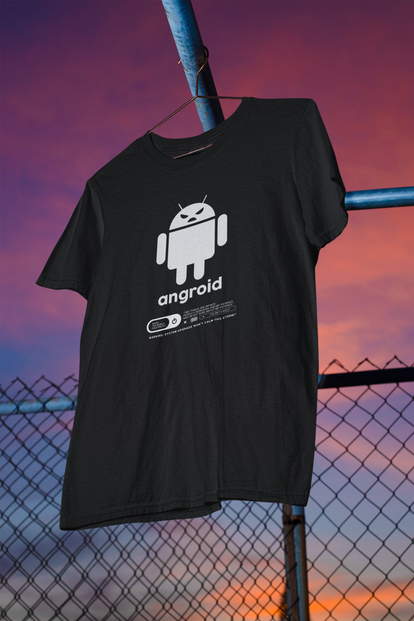 This regular fit Wit-Tee offers a clean, tailored look that fits your lifestyle like a well-written line of code. Whether you’re debugging conversations, dodging “404 Logic Not Found” moments, or just flexing your techie vibes, Angroid speaks for you in the wittiest way possible.