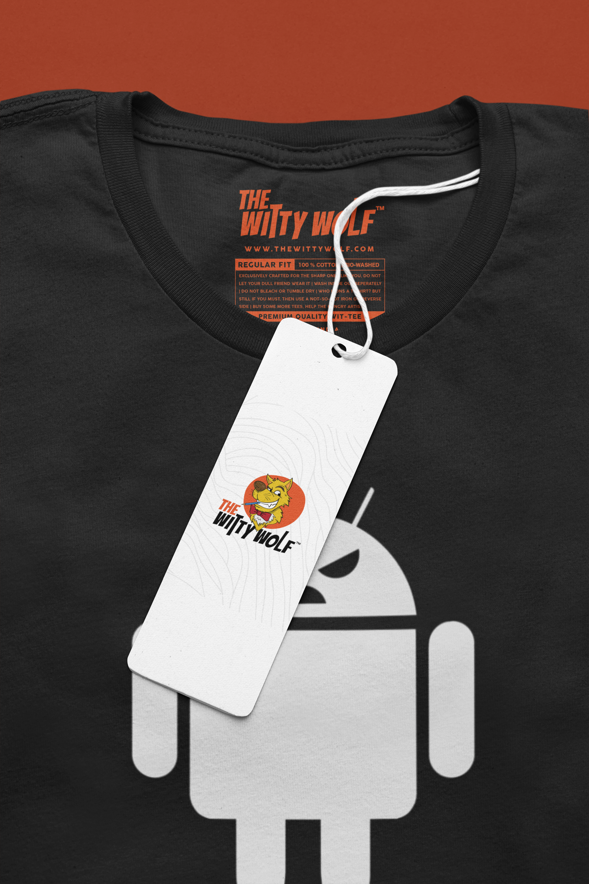 Keep it sharp and witty with the Angroid Regular Fit Wit-Tee! Made from 100% bio-washed cotton with a comfortable 180 GSM fabric, this Wit-Tee is designed for tech enthusiasts who know how to blend style with sarcasm. Featuring a 7x4 inch graphic print, the bold Angroid design- combining angry and android with a grumpy android illustration is perfect for anyone allergic to nonsense.