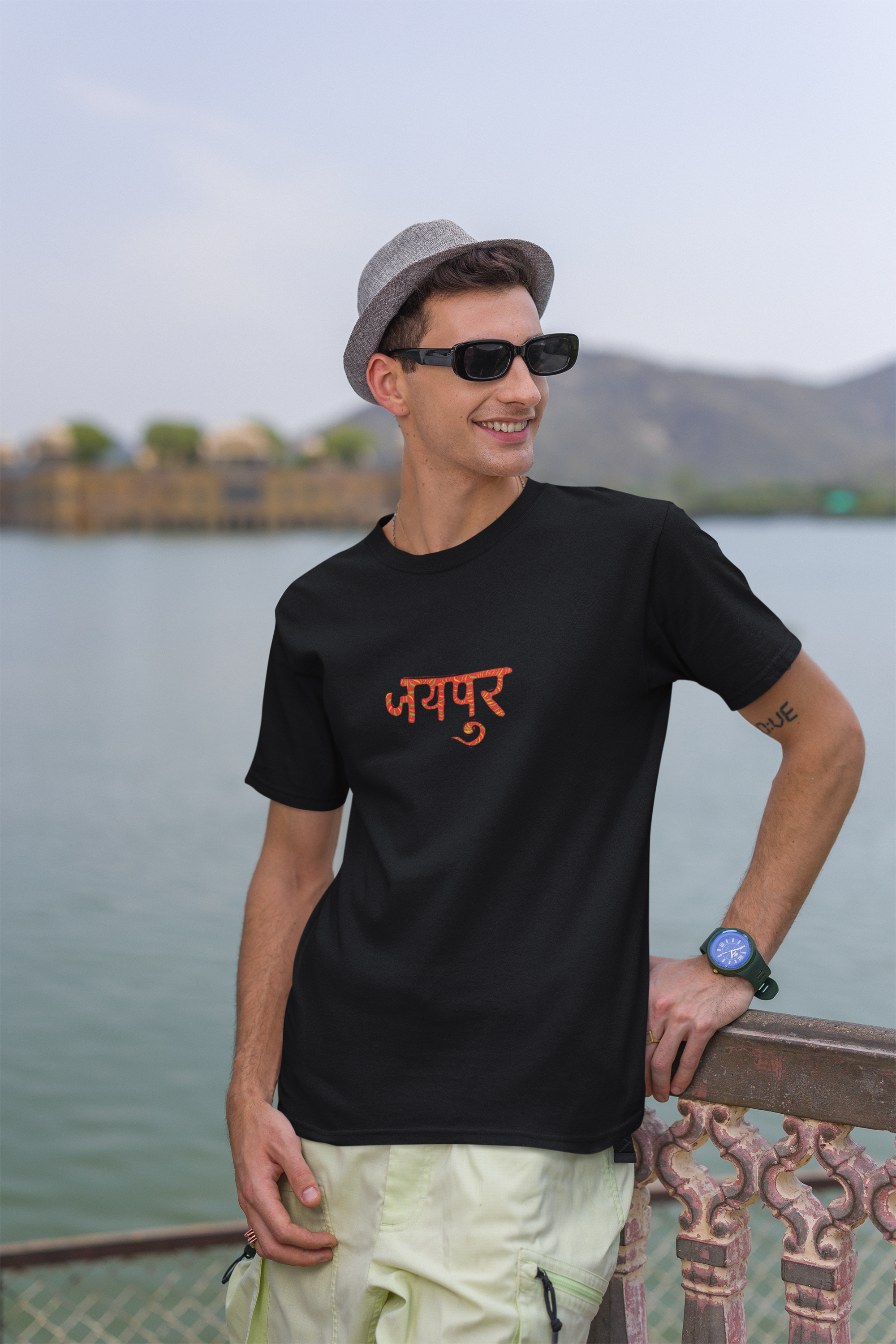Bring the charm and wit of the Pink City to your wardrobe with the Jaipur Wit-Tee! Made from 100% bio-washed cotton with a snug 180 GSM fabric, this Tshirt is not just an everyday essential, it’s a slice of Rajasthan you can wear. Featuring the word Jaipur in Hindi script, the design is a riot of colors and patterns inspired by the iconic Bandhej style, echoing the vibrance of the city’s bustling bazaars and royal heritage.