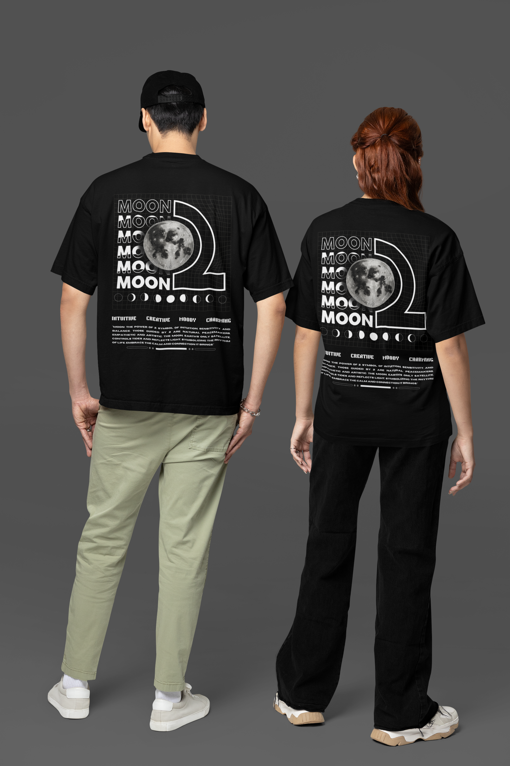 Inspired by Number 2 and the Moon in numerology, this Tshirt reflects the traits of intuition, creativity, and harmony. It’s a symbol of balance and connection, ideal for those who bridge logic and emotion. The design features a minimalist 3x5 inch artwork on the front for subtle elegance, while the bold 14x16 inch celestial design on the back celebrates the Moon’s phases and cosmic influence.