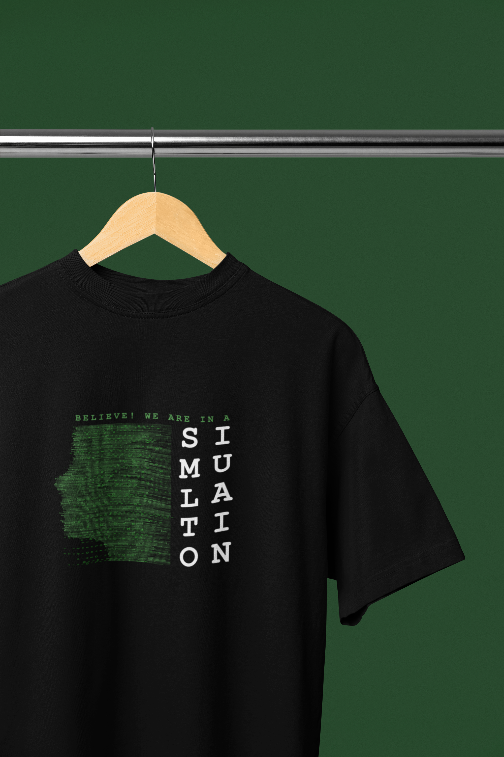 Ever had déjà vu, felt like the world was running on copy-paste logic, or questioned if reality is just a super-advanced RPG? Inspired by the Matrix aesthetic and the mind-warping Simulation Theory, this oversized statement piece is for those who see beyond the illusion.